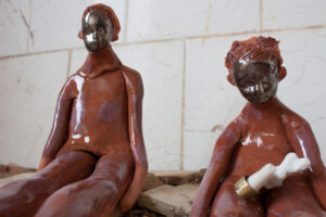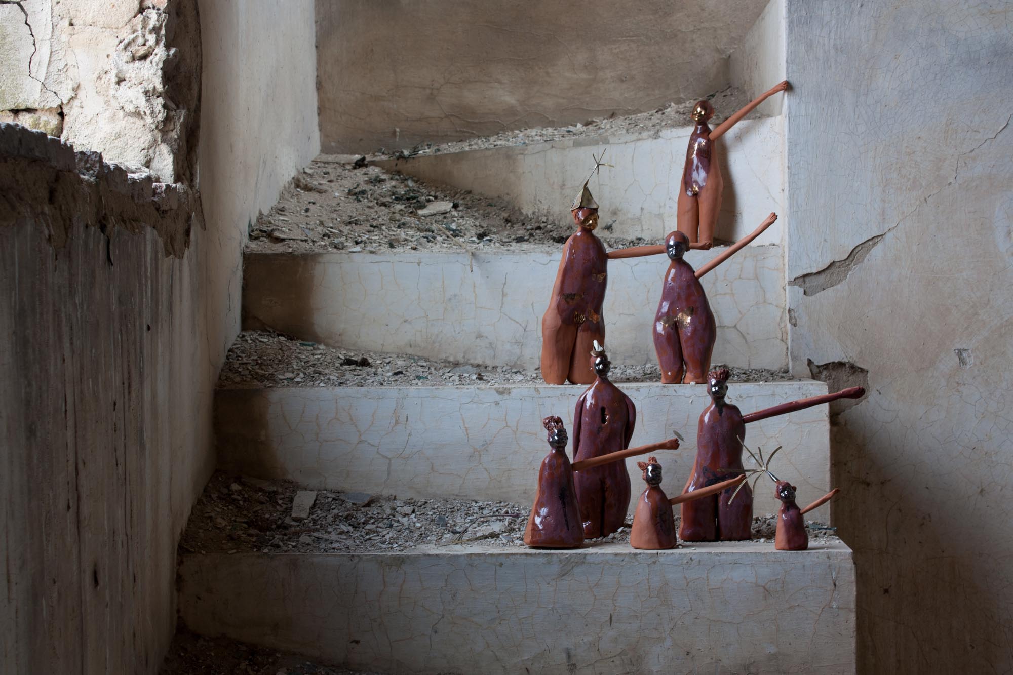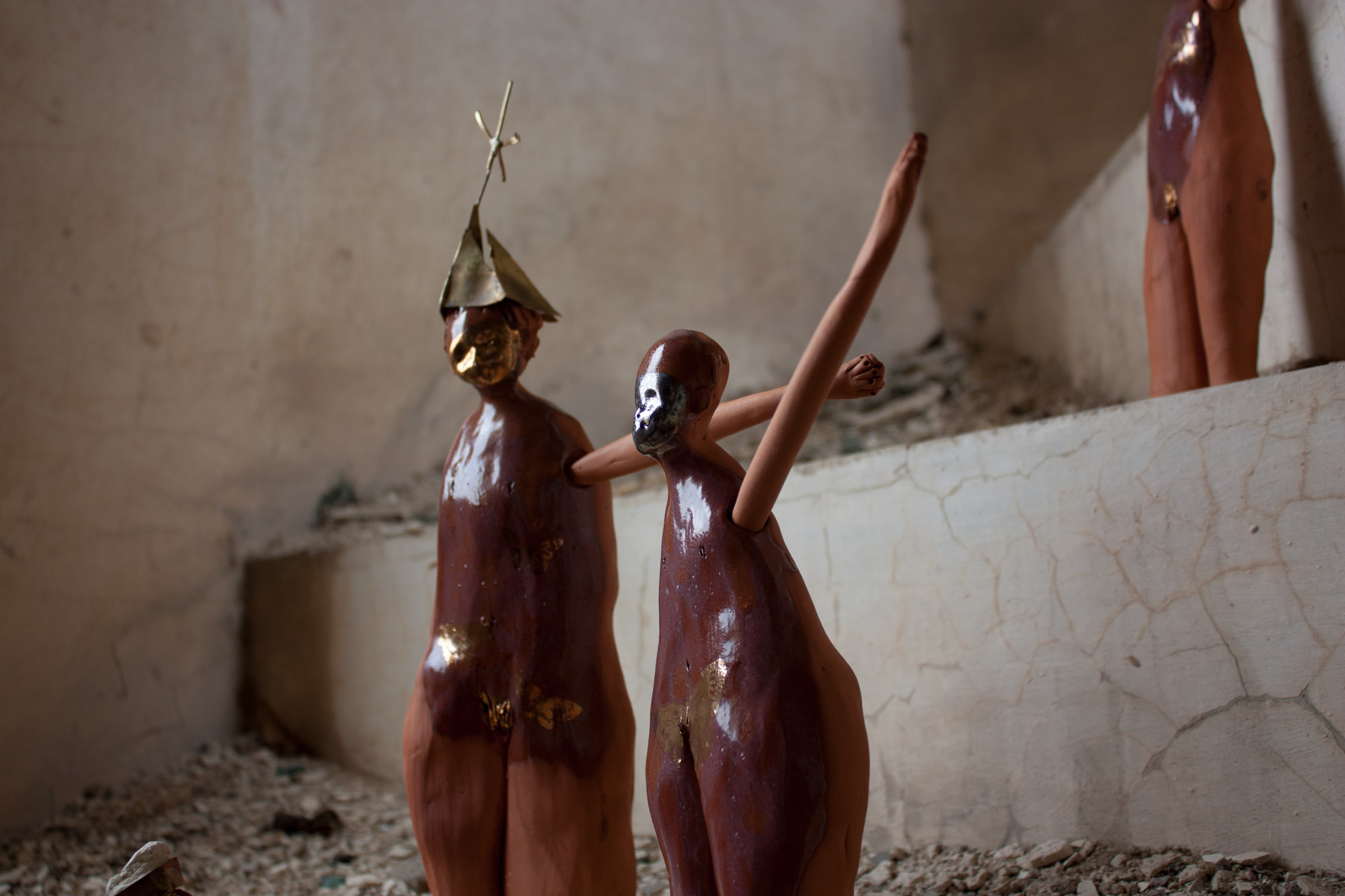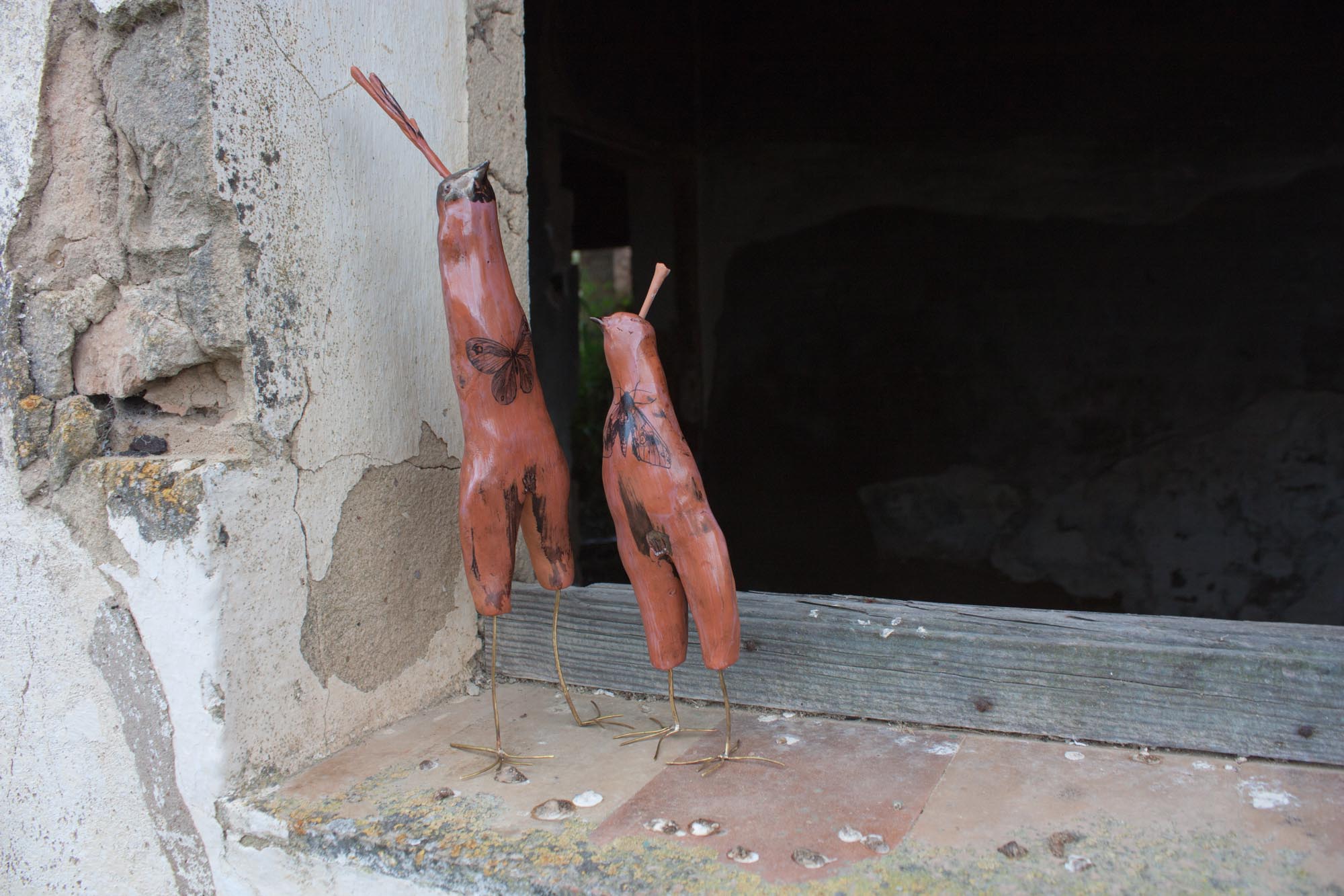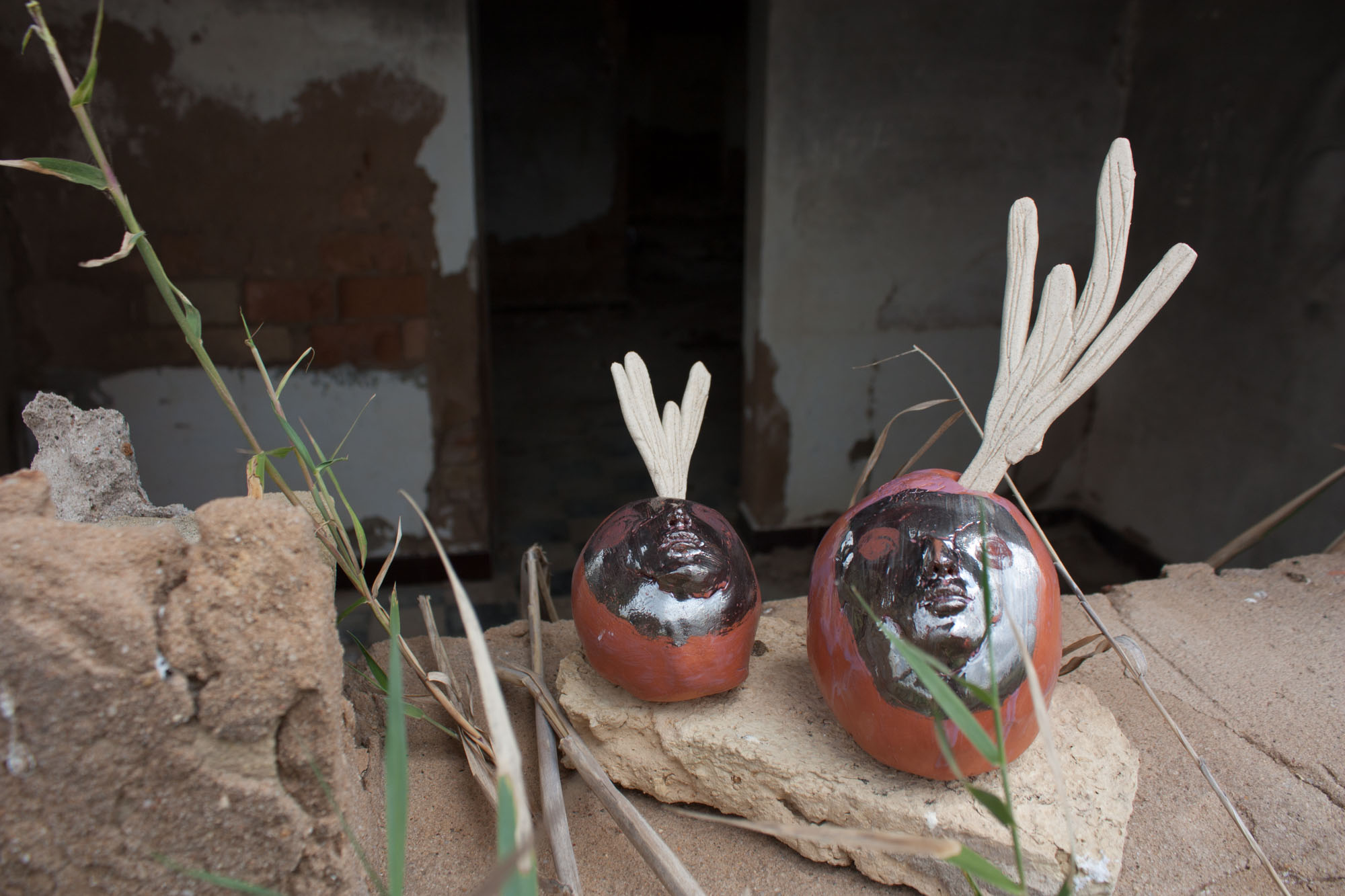 Estuve pensando en el nombre que podía darles y se me ocurrió titular a esta nueva serie de piezas con la palabra orígenes. Entonces surgió la idea de utilizar barro rojo para su realización. Me puse a imaginar cómo serían las primeras piezas de barro de nuestros antepasados. Probablemente nacerían de la necesidad de utilizar algún recipiente para contener alimentos y estuve leyendo que cuando los cazadores recolectores nómadas empezaron a modificar sus hábitos criando animales y cultivando plantas, surgió la alfarería, que propició toda clase de herramientas y receptáculos.