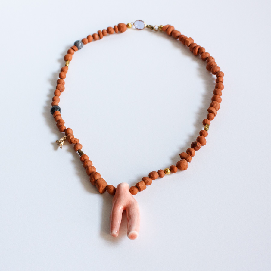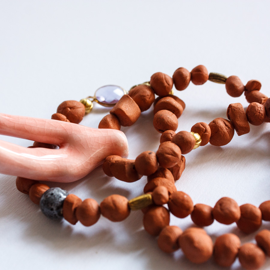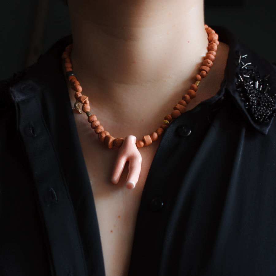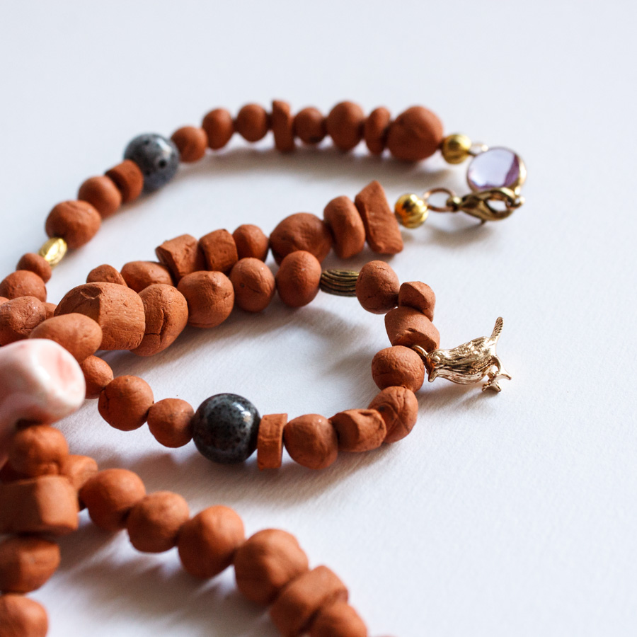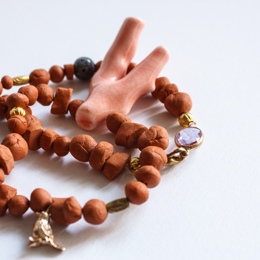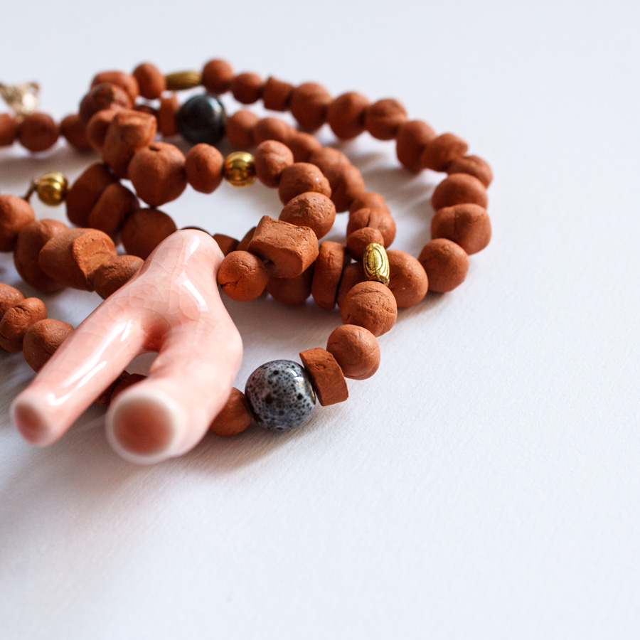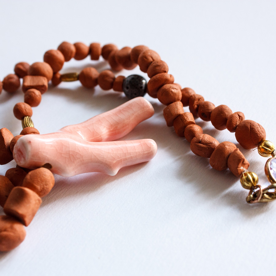 Etiquetas: barro rojo, collar, coral