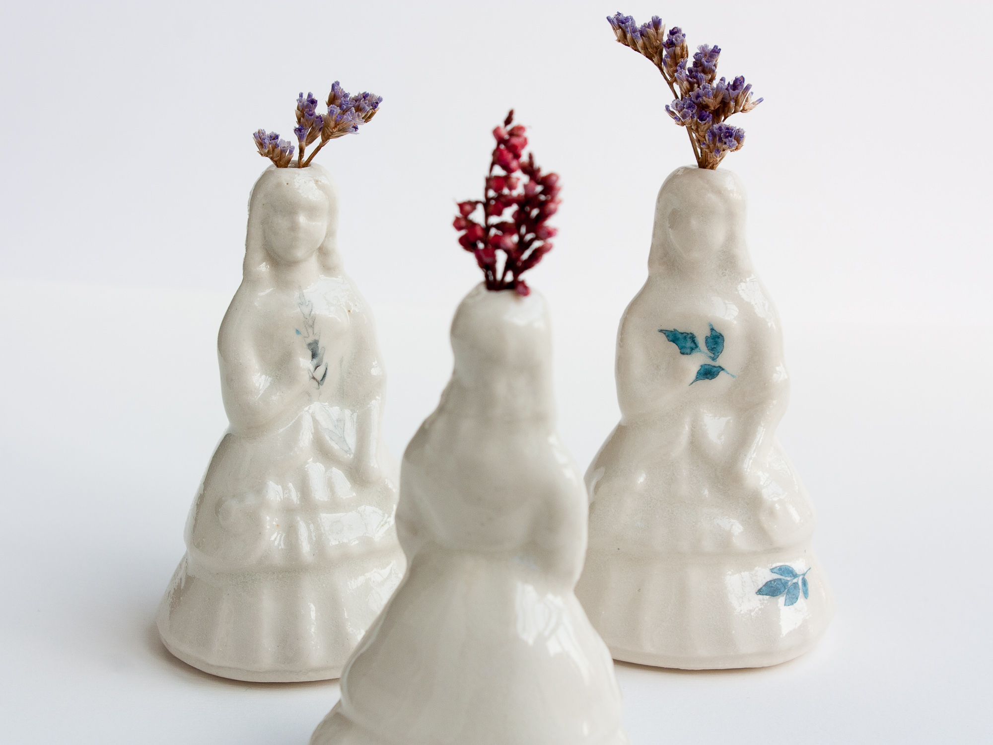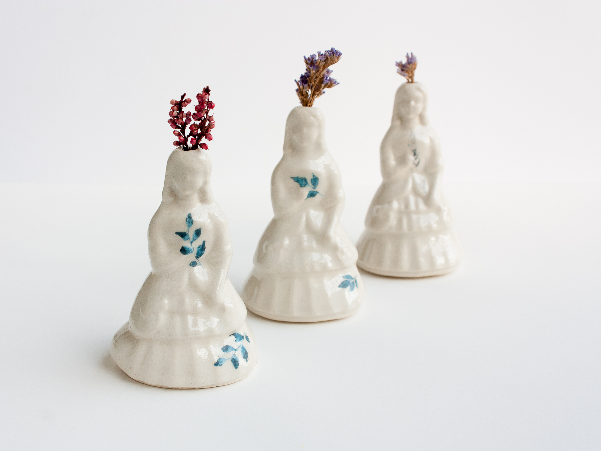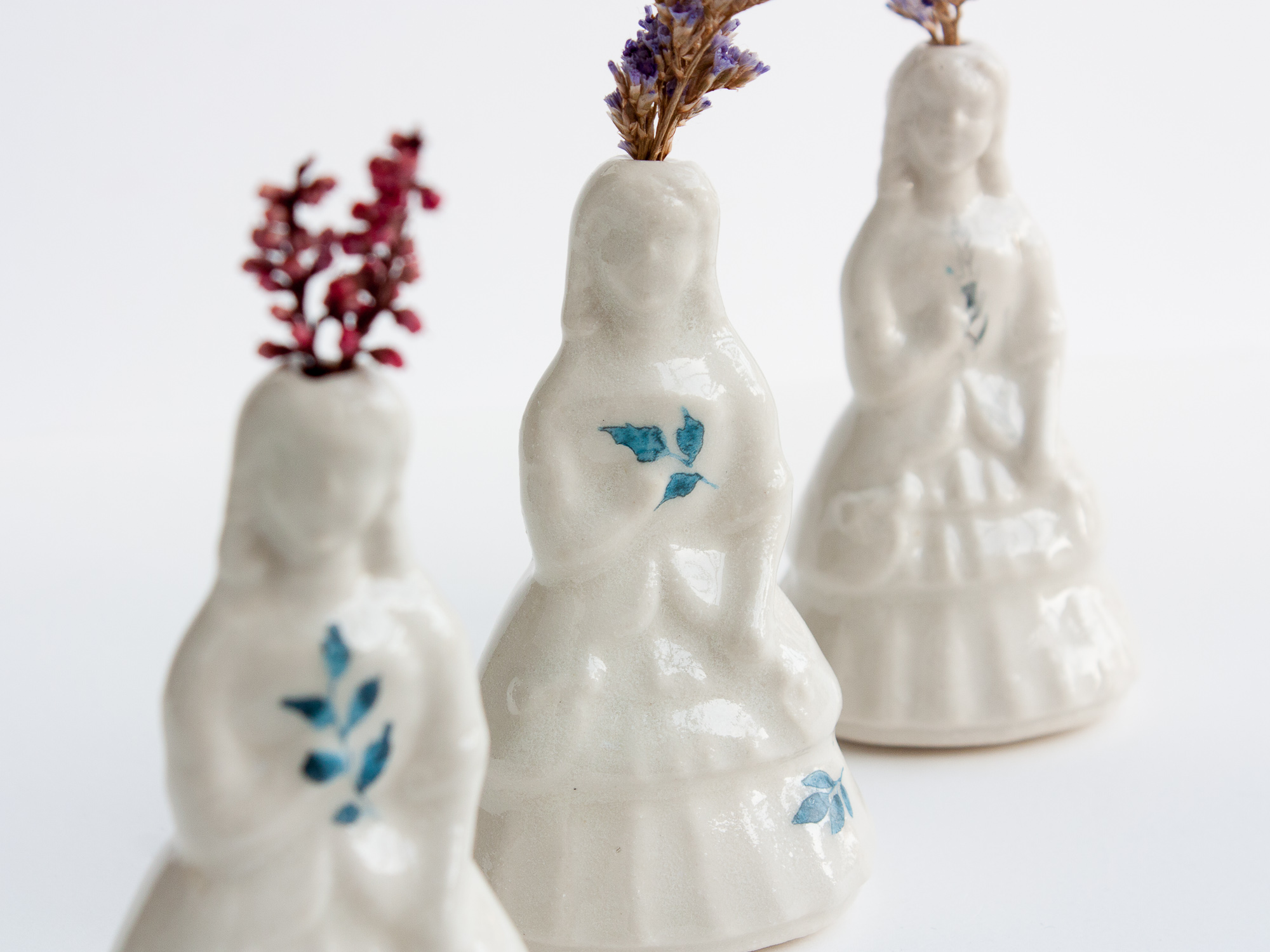 Realizadas en gres de colada sobre molde y pintadas a mano con esmaltes transparentes de alta temperatura a 1230ºC. La niña de España, realizada en mi taller de Sevilla, es un bonito objeto decorativo que puede colocarse sobre cualquier superficie y estancia de tu casa, oficina o donde prefieras.
