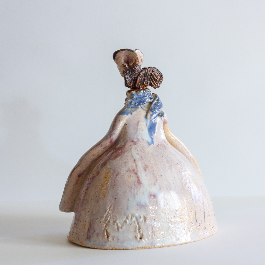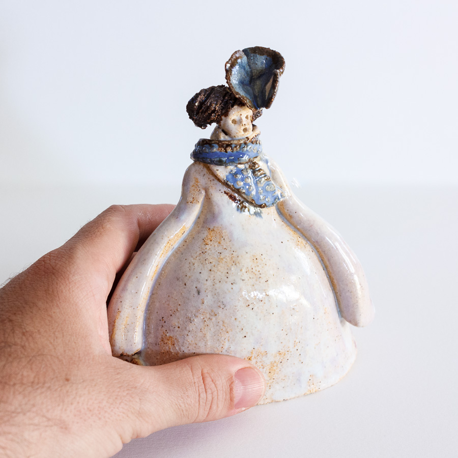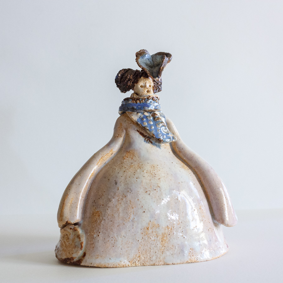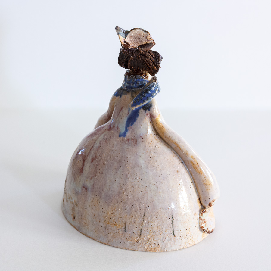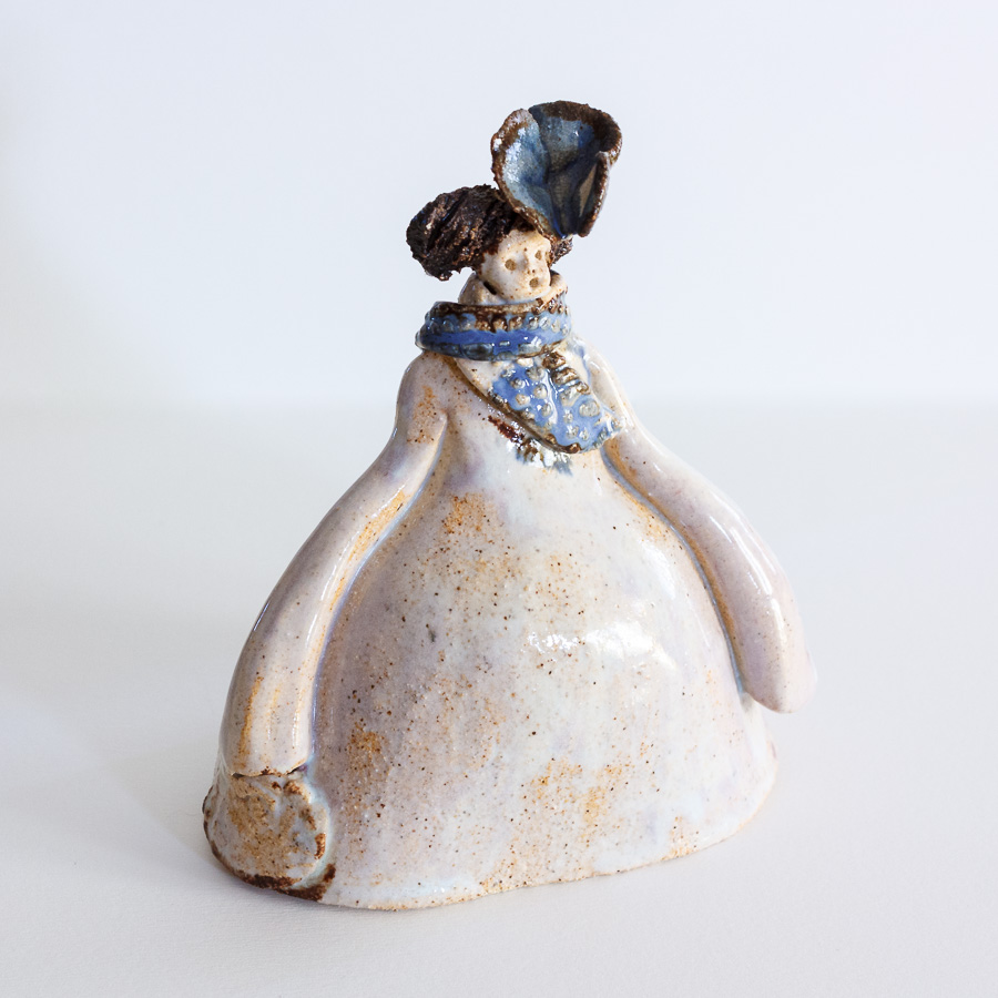 Menina de Velázquez realizada en gres y decorada con esmaltes de alta temperatura.