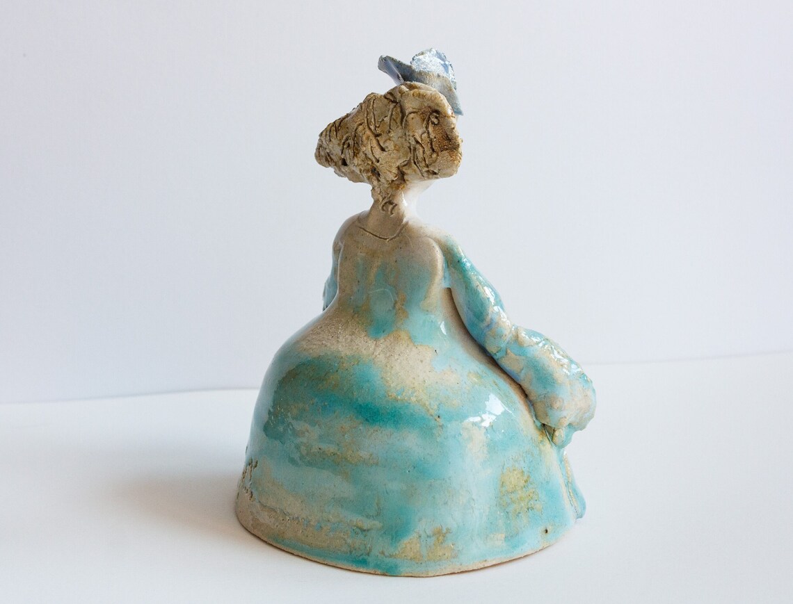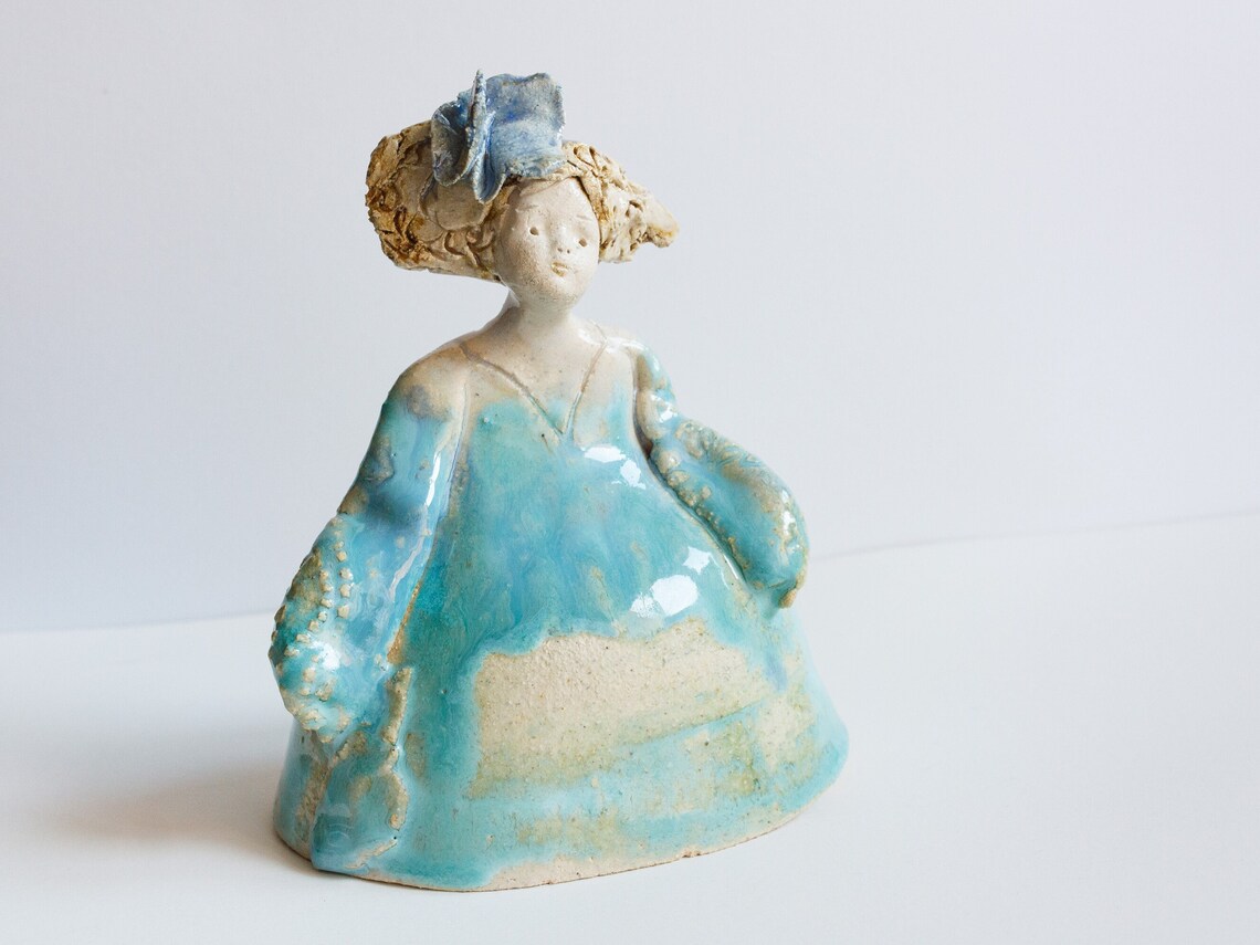 Esta escultura de mujer basada en las Meninas de Velázquez es una pieza única de cerámica hecha a mano en gres de alta temperatura. El gres es un tipo de arcilla muy resistente que se cuece a 1240ºC. MIs piezas tienen un aspecto antiguo (vintage) con imperfecciones y rugosidades de lo hecho a mano.