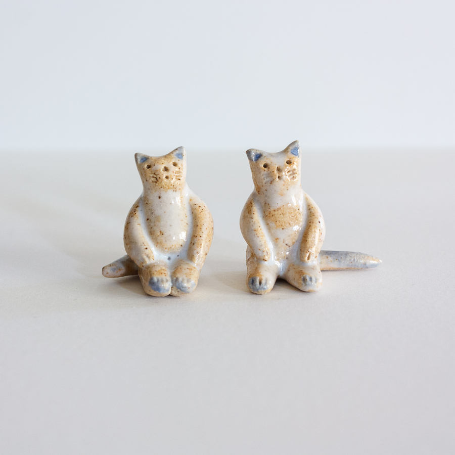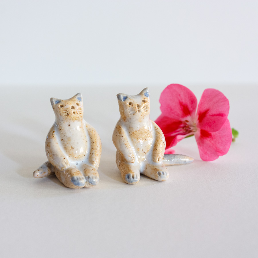 Miniaturas de gatitos realizadas a mano en gres y decorados con esmaltes de alta temperatura.