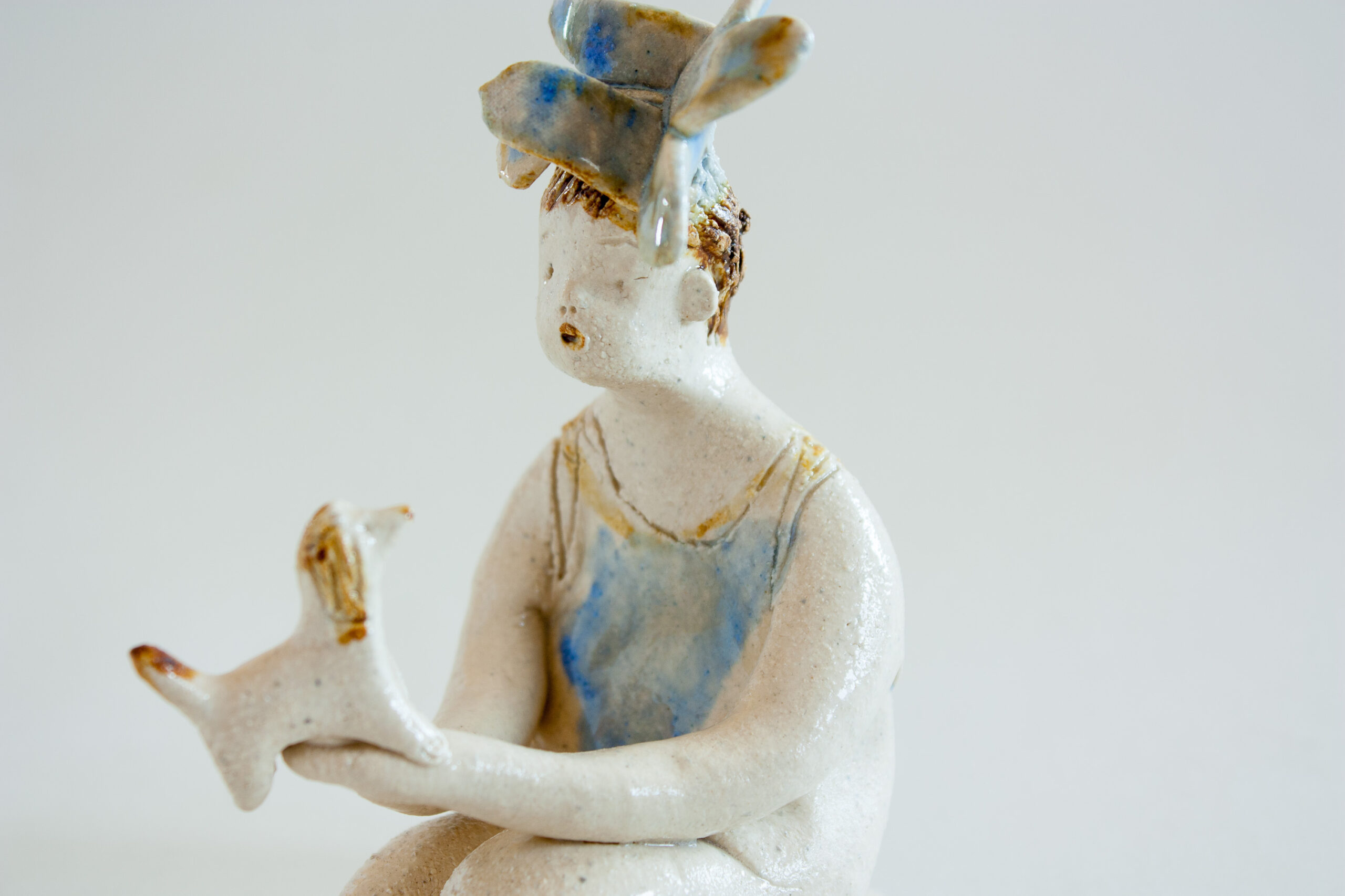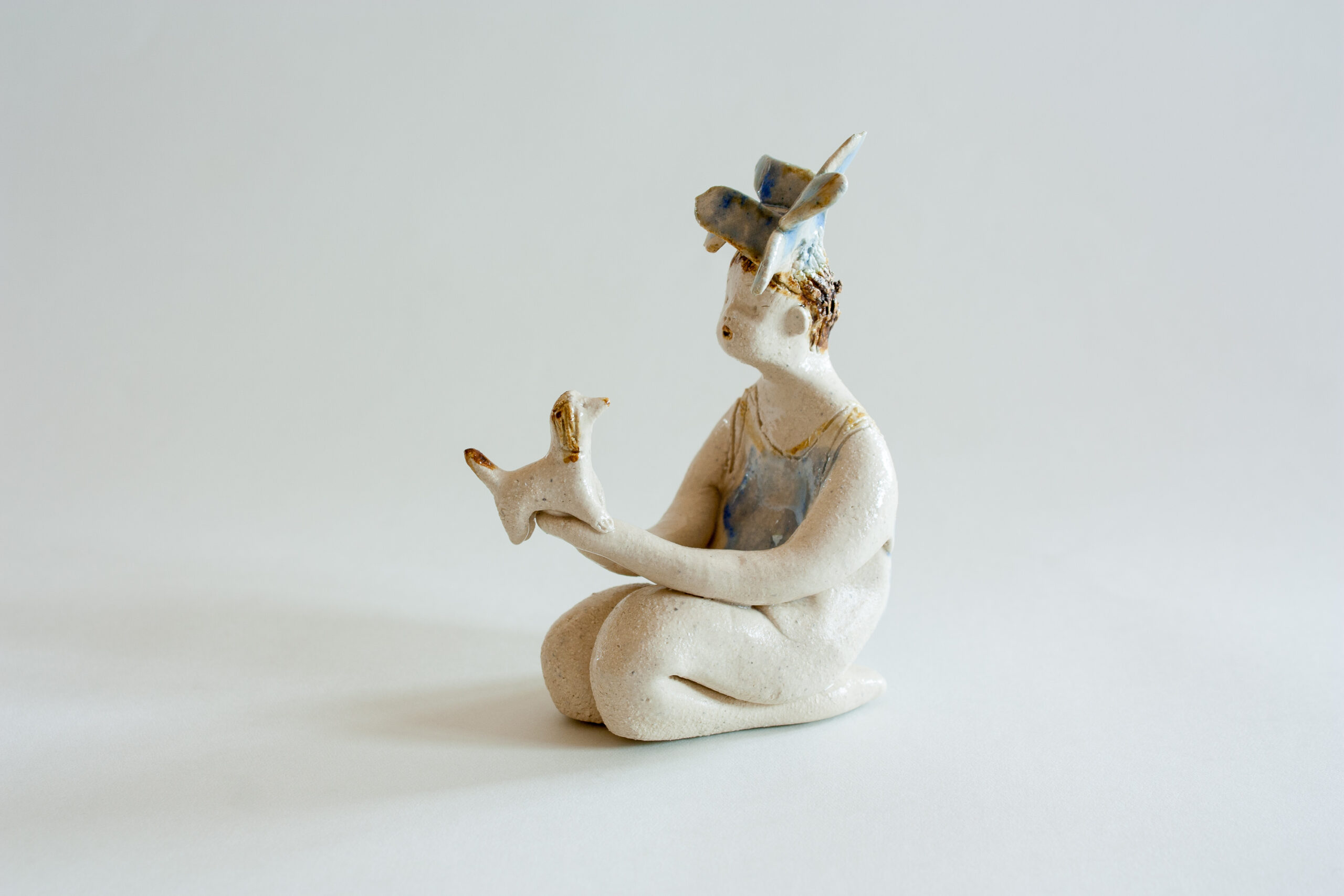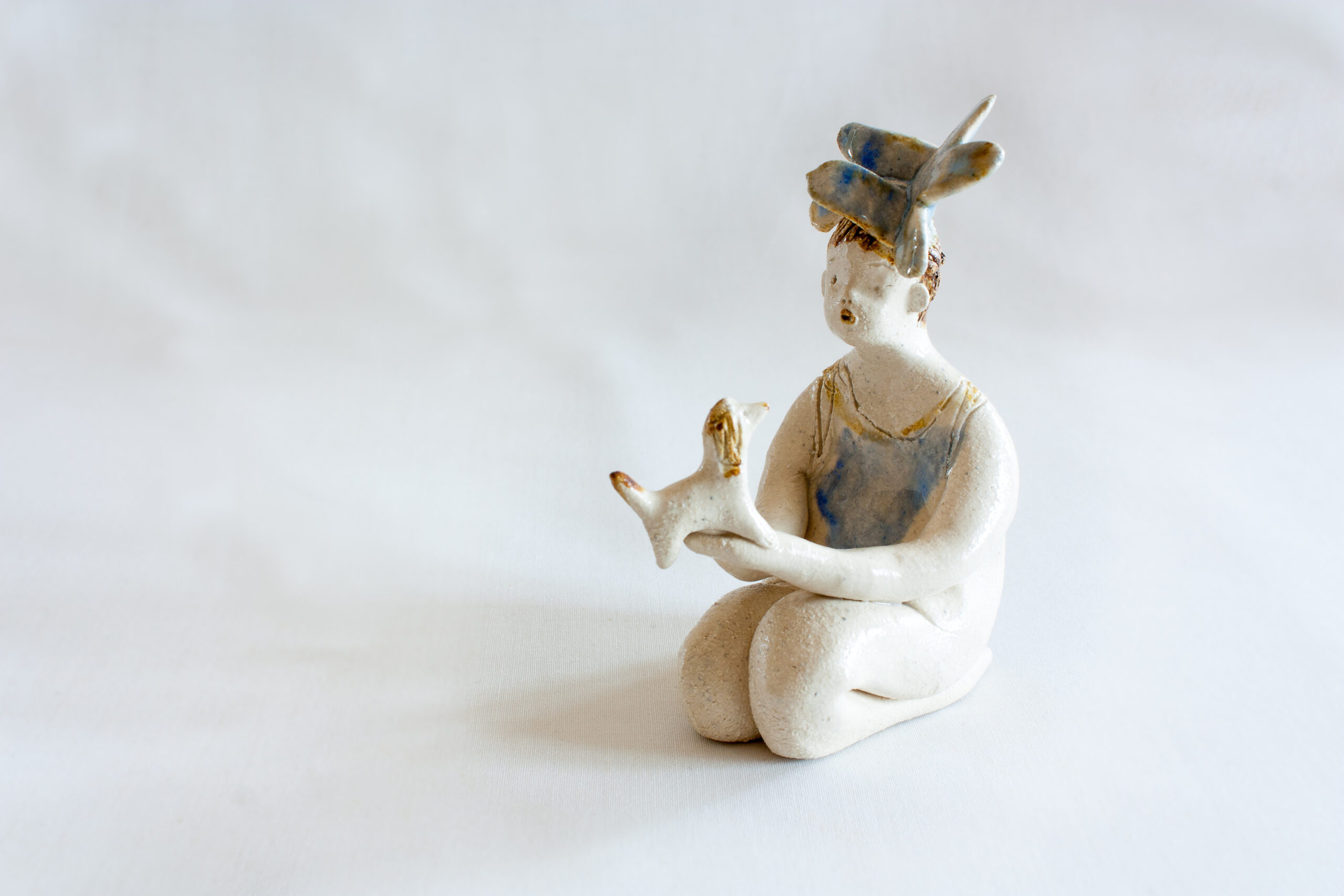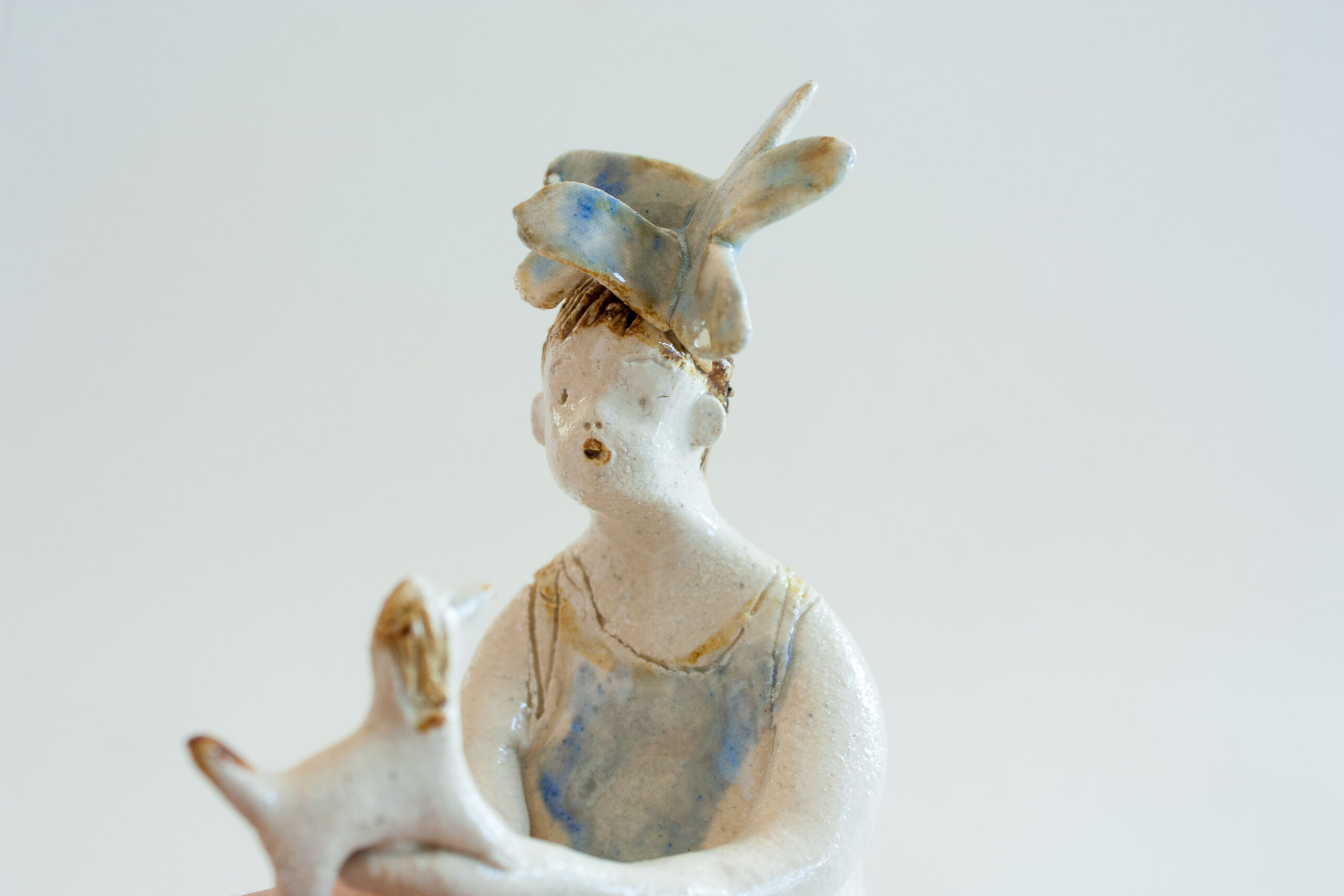 La estatuilla de la niña está modelada a mano y pintada con esmaltes cerámicos de alta temperatura 1240ºC.
