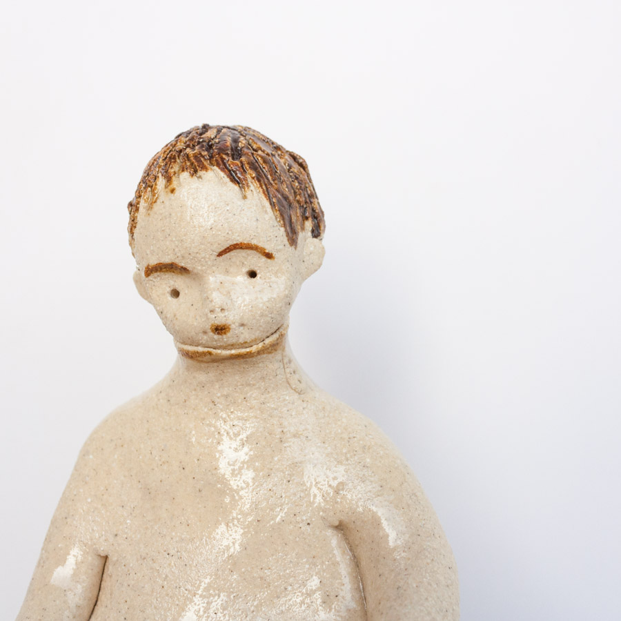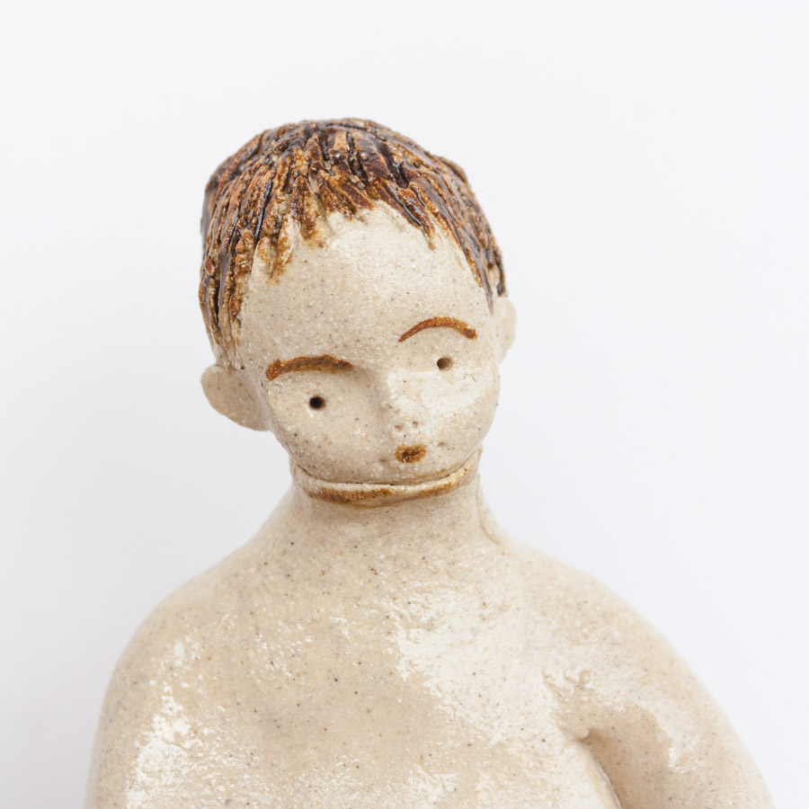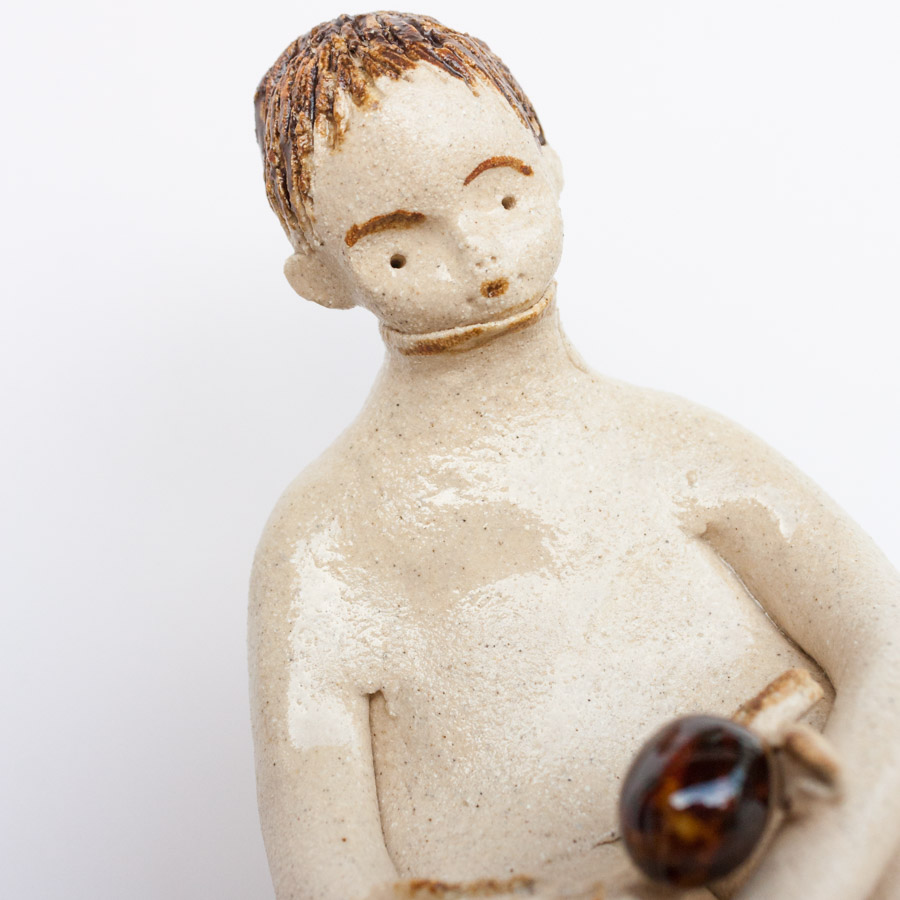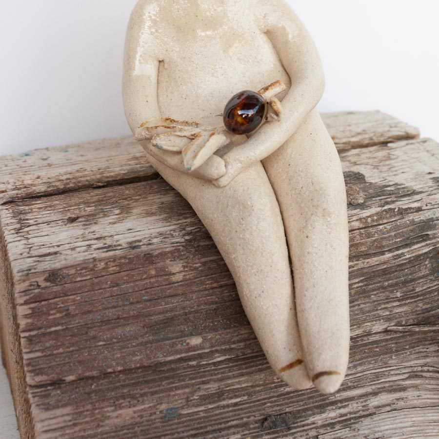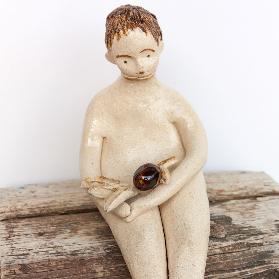 Figura de de niño sentado con rama de olivo sobre sus manos. Para colocar sentada sobre balda de estantería o cualquier soporte. (el soporte de madera de la fotografía no va incluido).