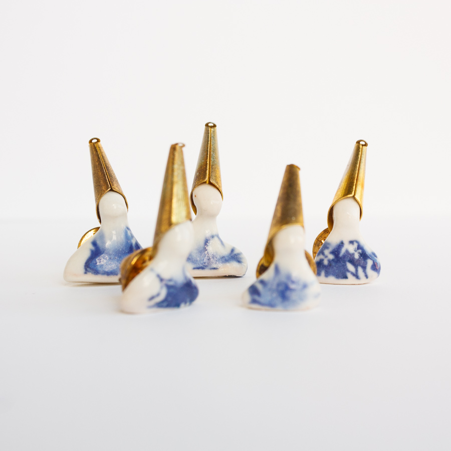 Pin cucurucho de porcelana serigrafiada y esmaltada. Precio por unidad.