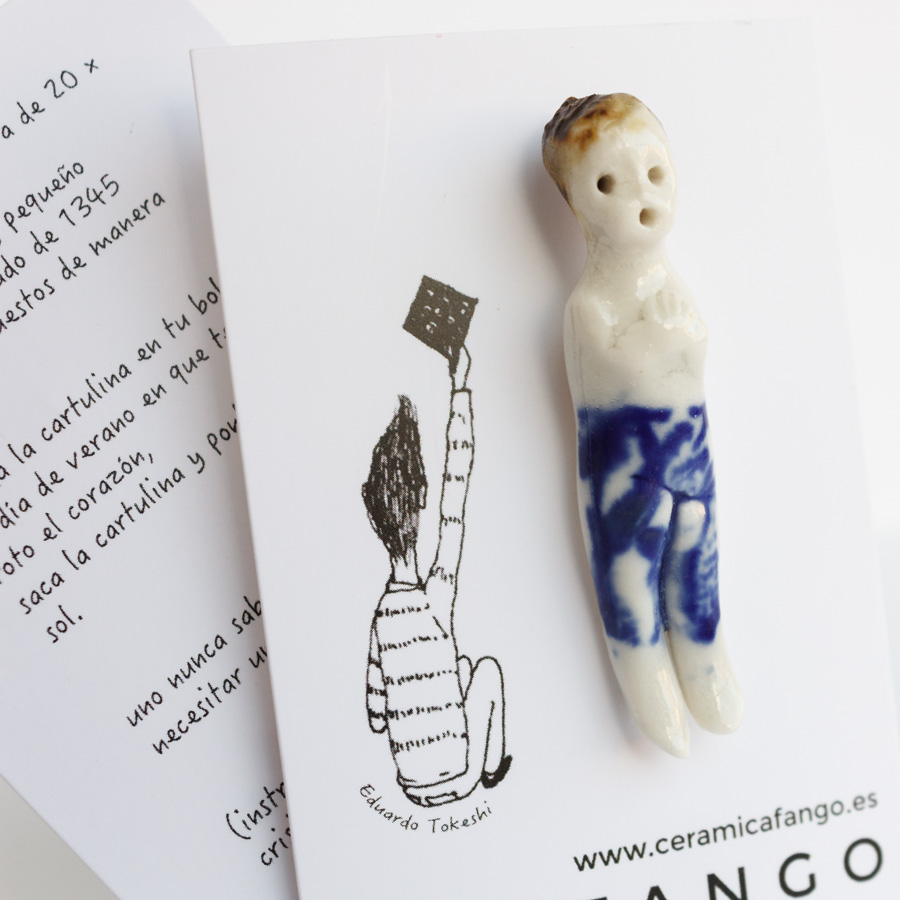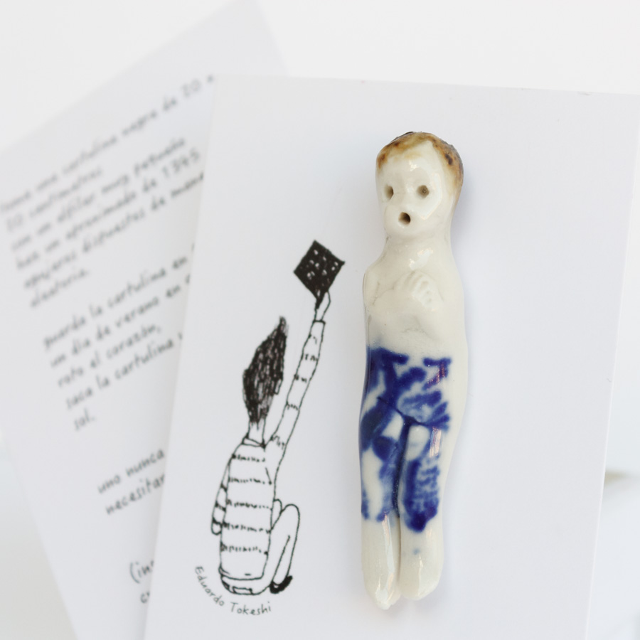 Pin niño minuto de porcelana serigrafiada y esmaltada. Inspirado en un poema de Eduardo Tokeshi.