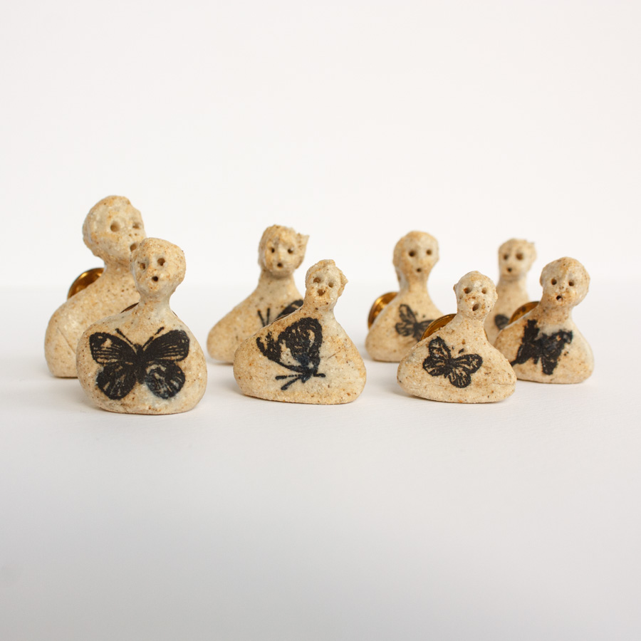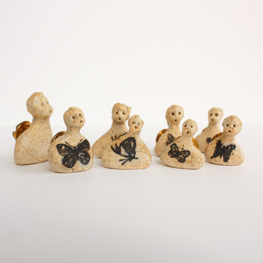Pin serie gente en gres serigrafiado. Precio por unidad.