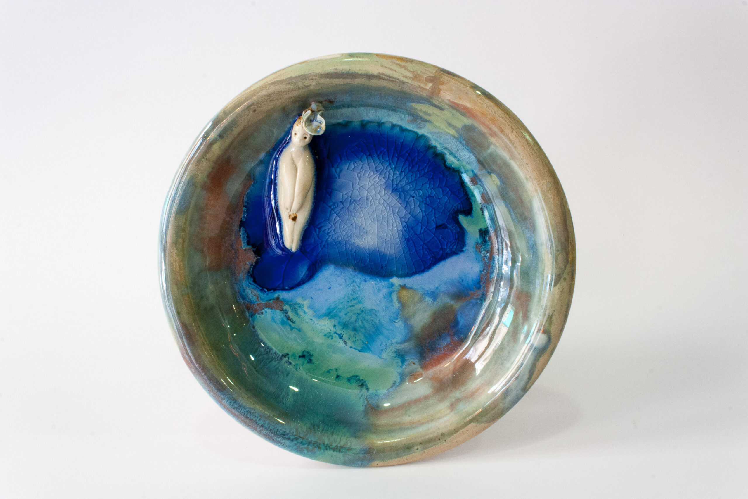Plato decorativo de cerámica gres con figurita de niña.