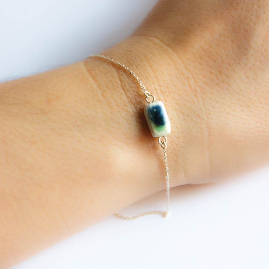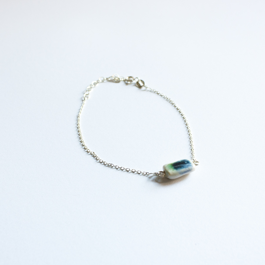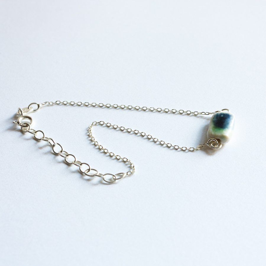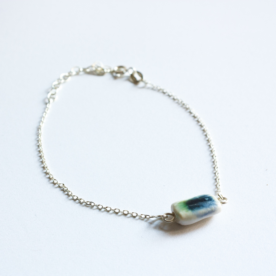 Pulsera de plata con pieza de porcelana modelada y pintada a mano.